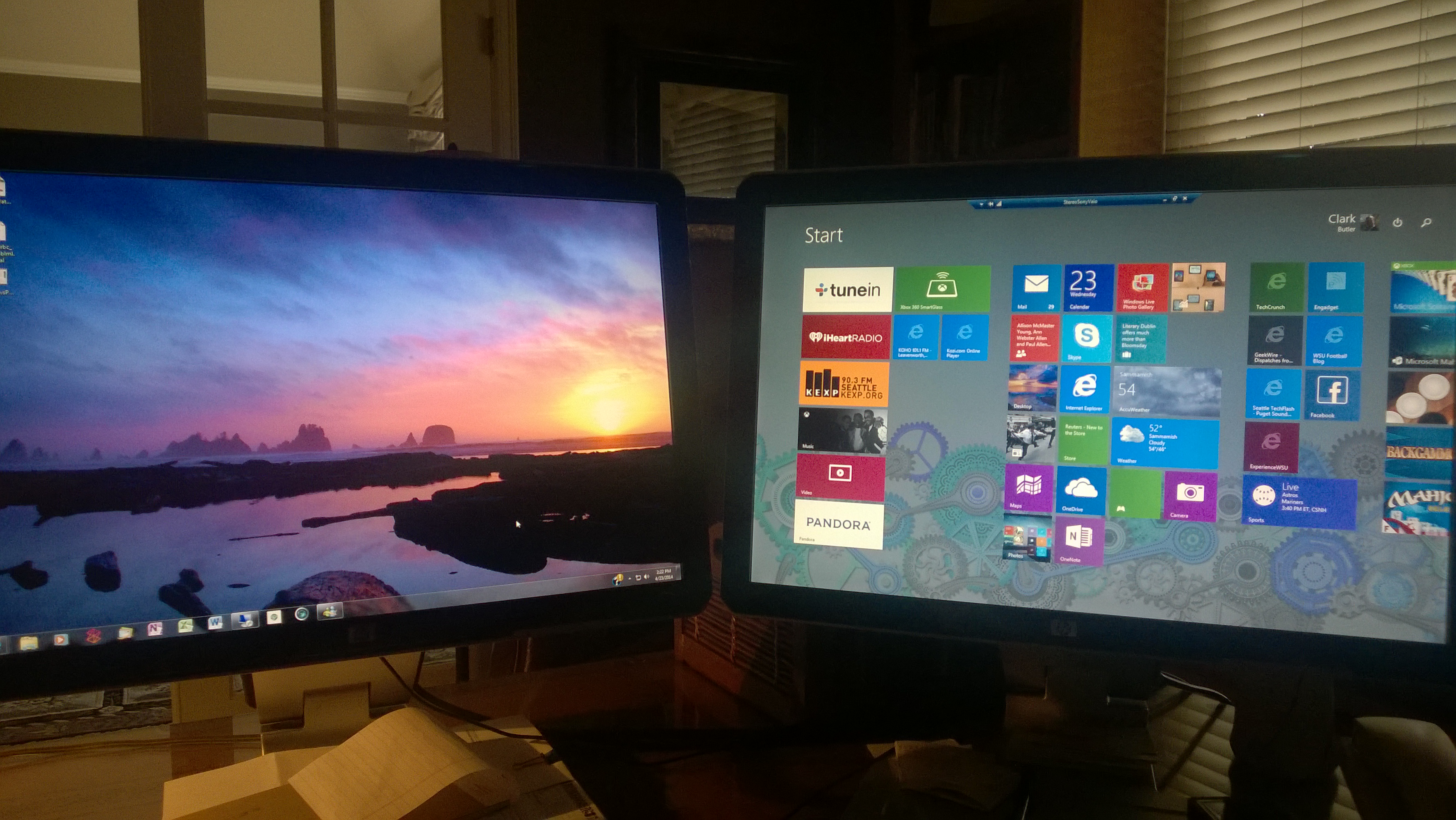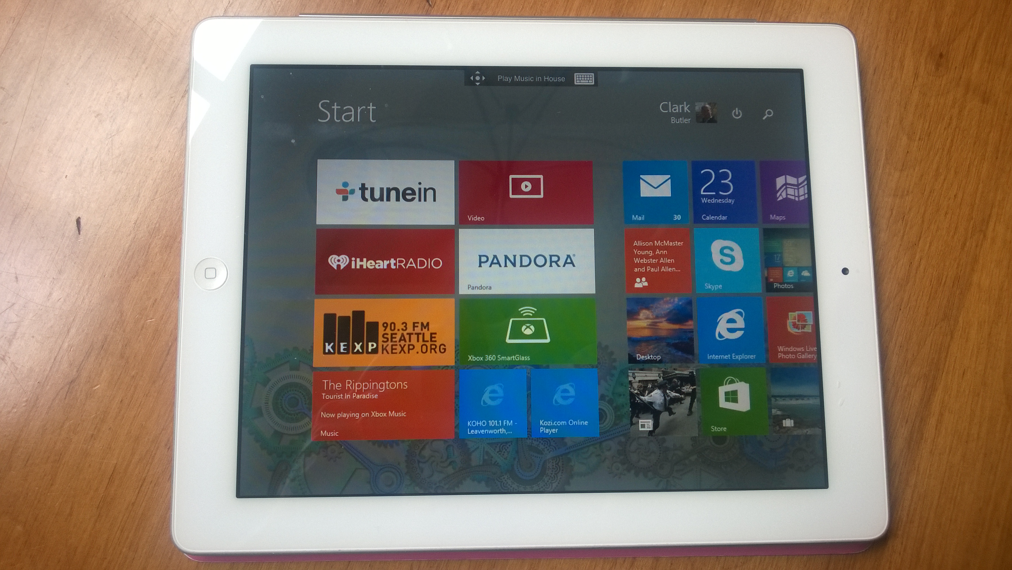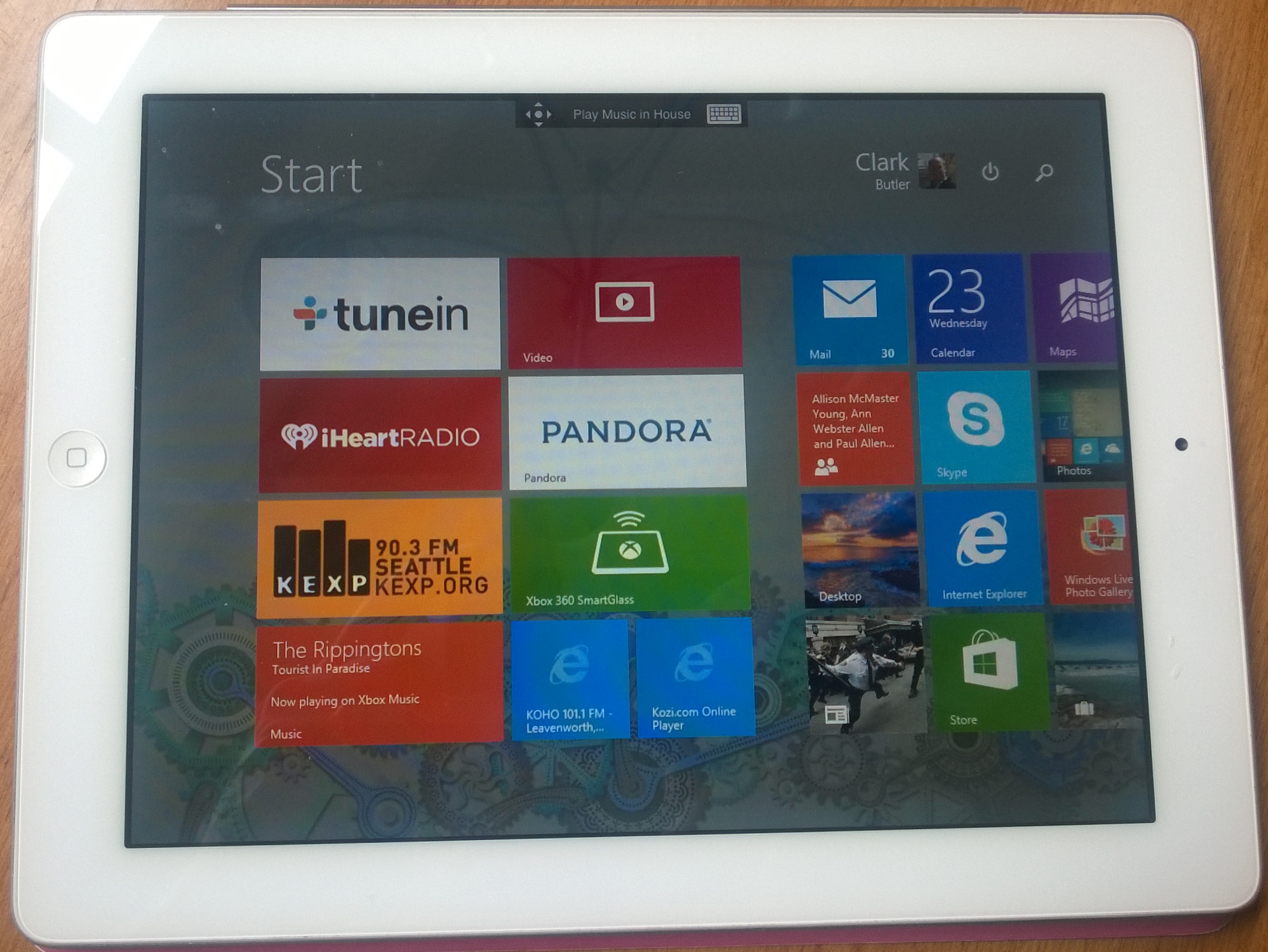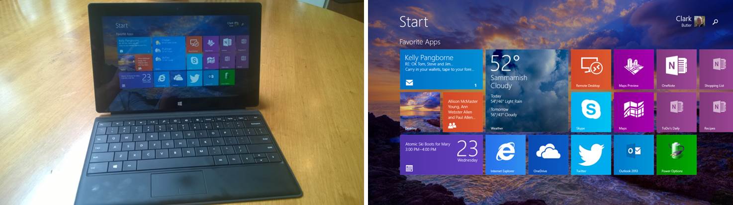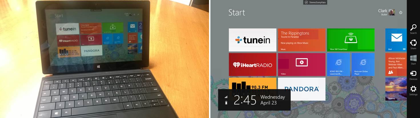 Here is my Surface, which has a sunset/ocean background and a different live-tiles layout than the stereo PC: